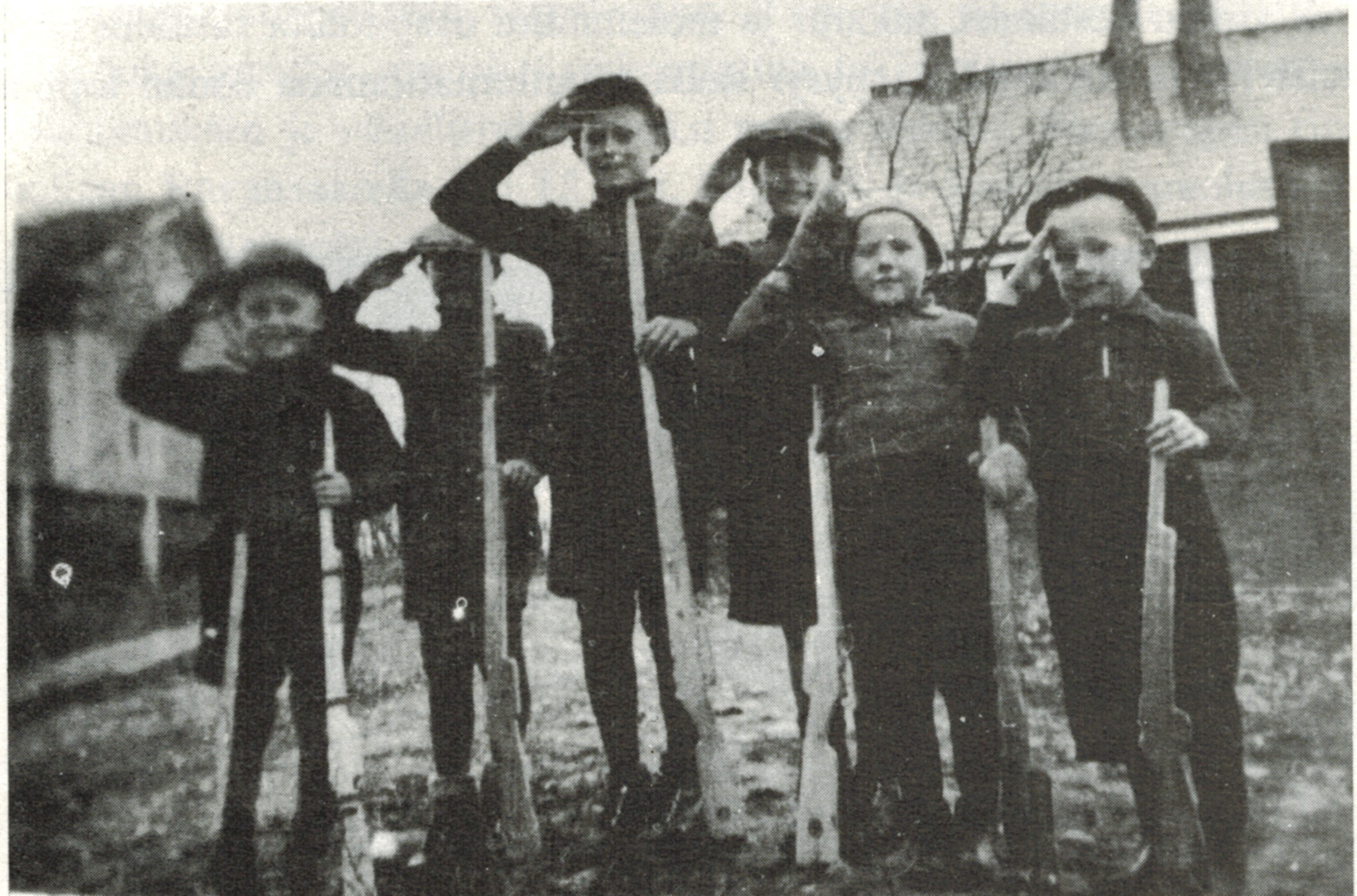 Varvin pojille riitti salaisia seikkailumaastoja linnoituksessa ja telakoilla. Kuvan pikkupojat olivat leikeissään 1930-luvun lopulla varustautumistouhussa mukana. Kuvassa kolmas oikealta isäni Martti Käki. Varvin pojan pojat kiinnittivätkin Käki Martin kotitalon perustukseen kyltin:
