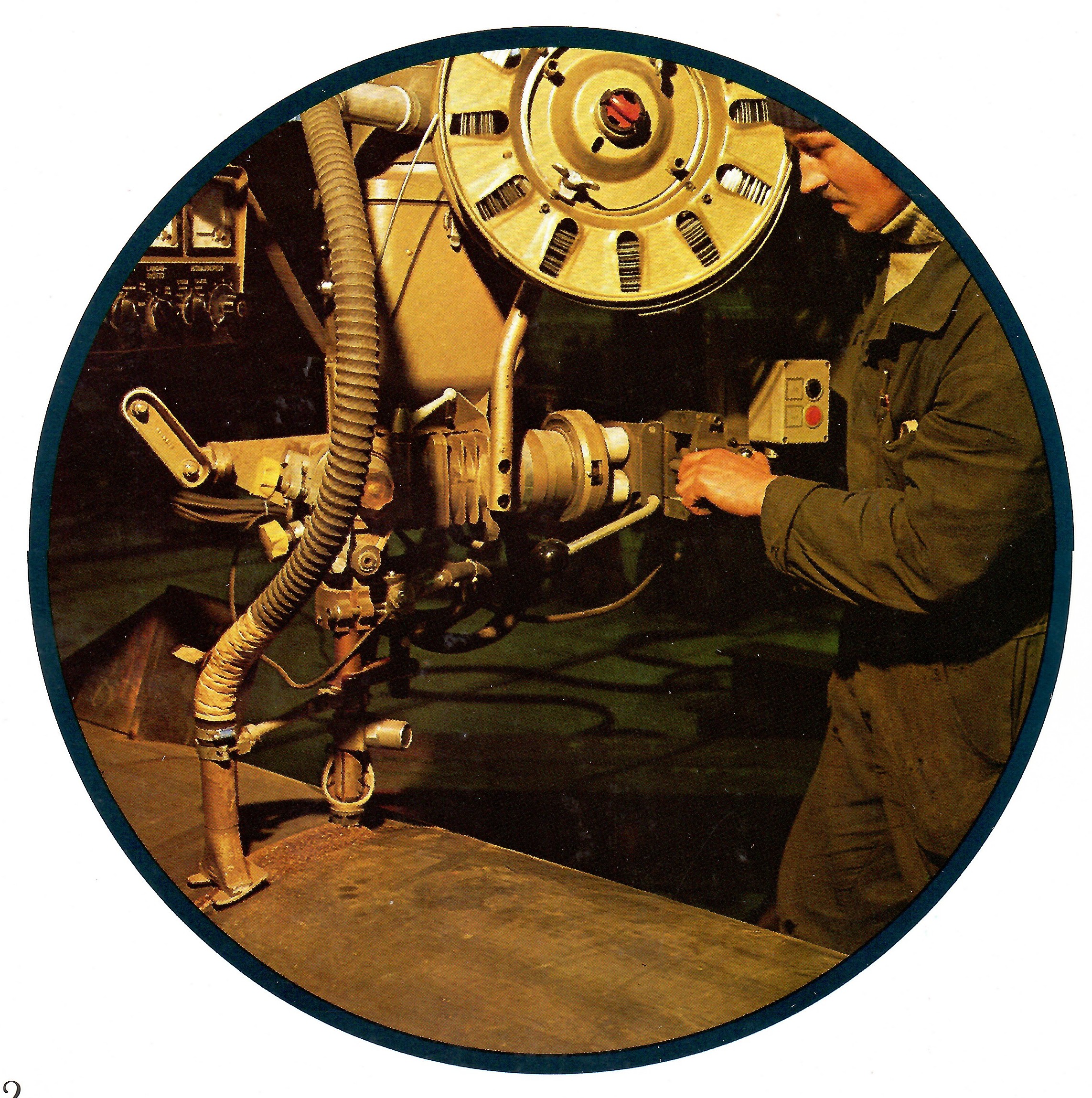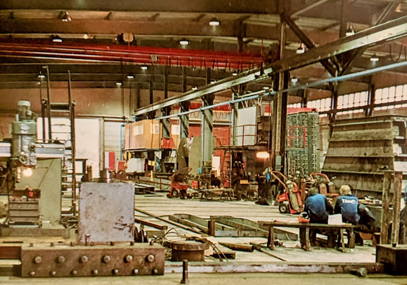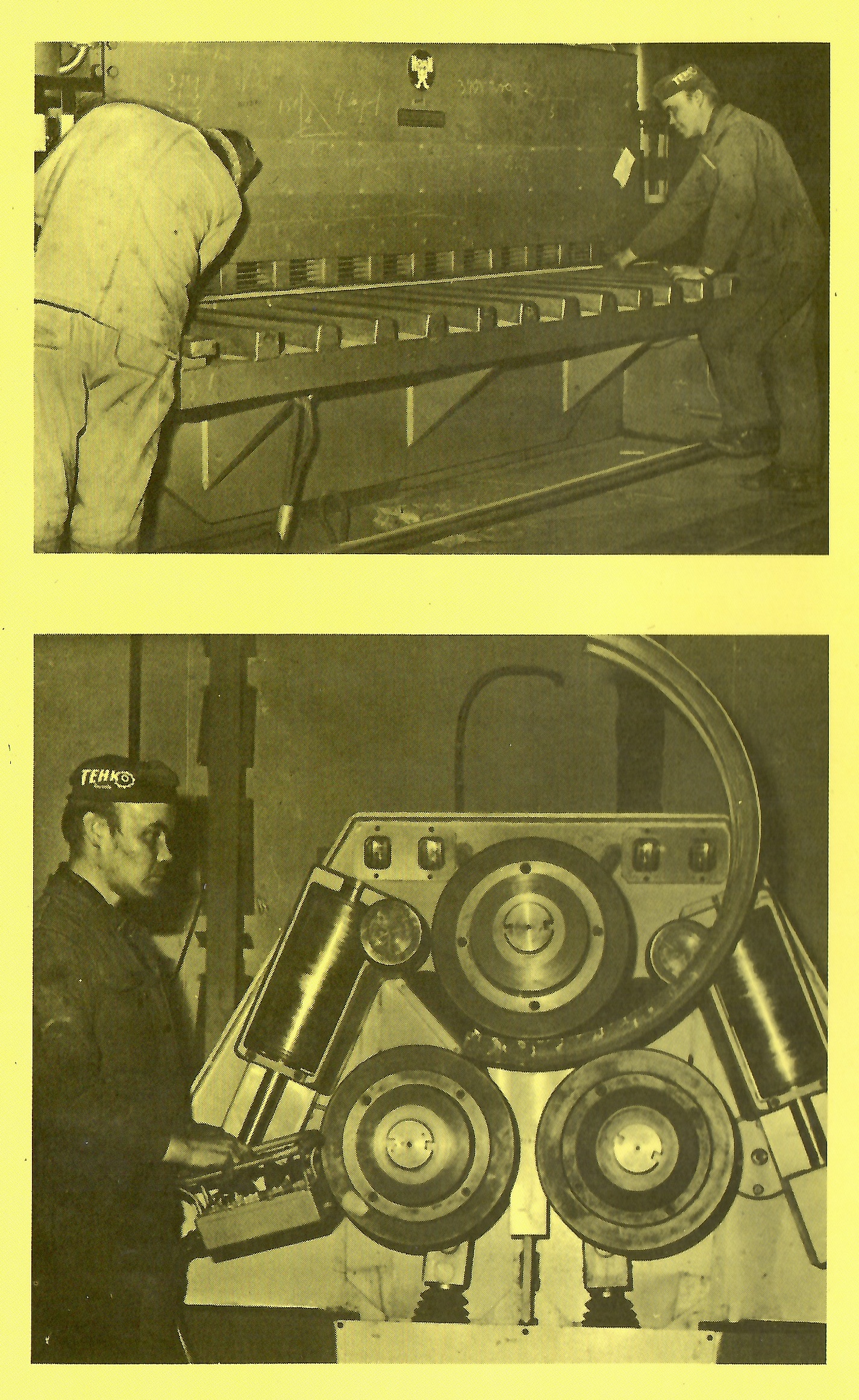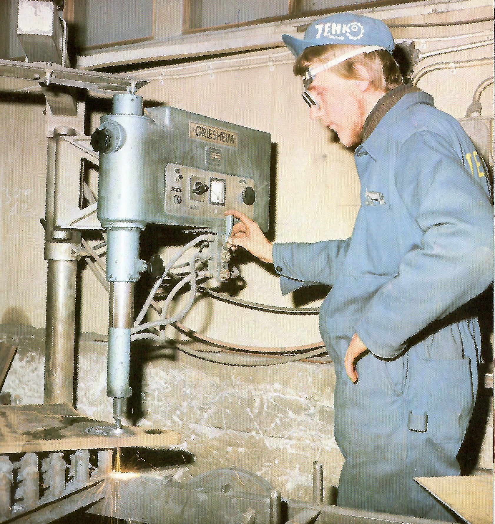 Kuvassa Griesheim-polttoleikkauskone 3-120 mm:n levyille. Levyhalliin kuului myös särmäyspuristin, levyn pyöristysvalssi, hitsauskoneita ym.