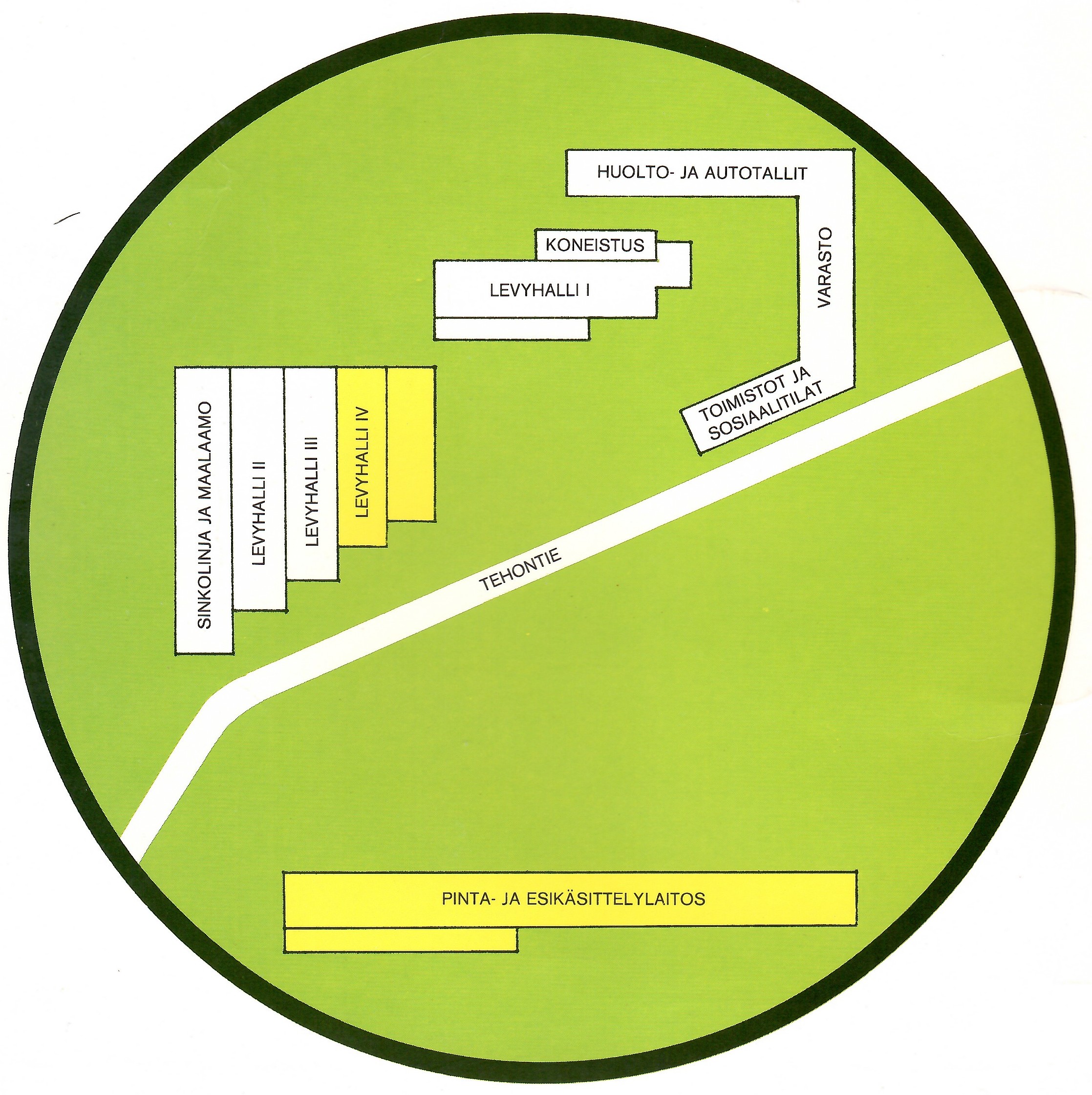 Levyhallin 2.000 m2 laajennus ja iso pinta- ja esikäsittelylaitos junaraiteineen Tehontien toiselle puolelle olivat valmisteilla.