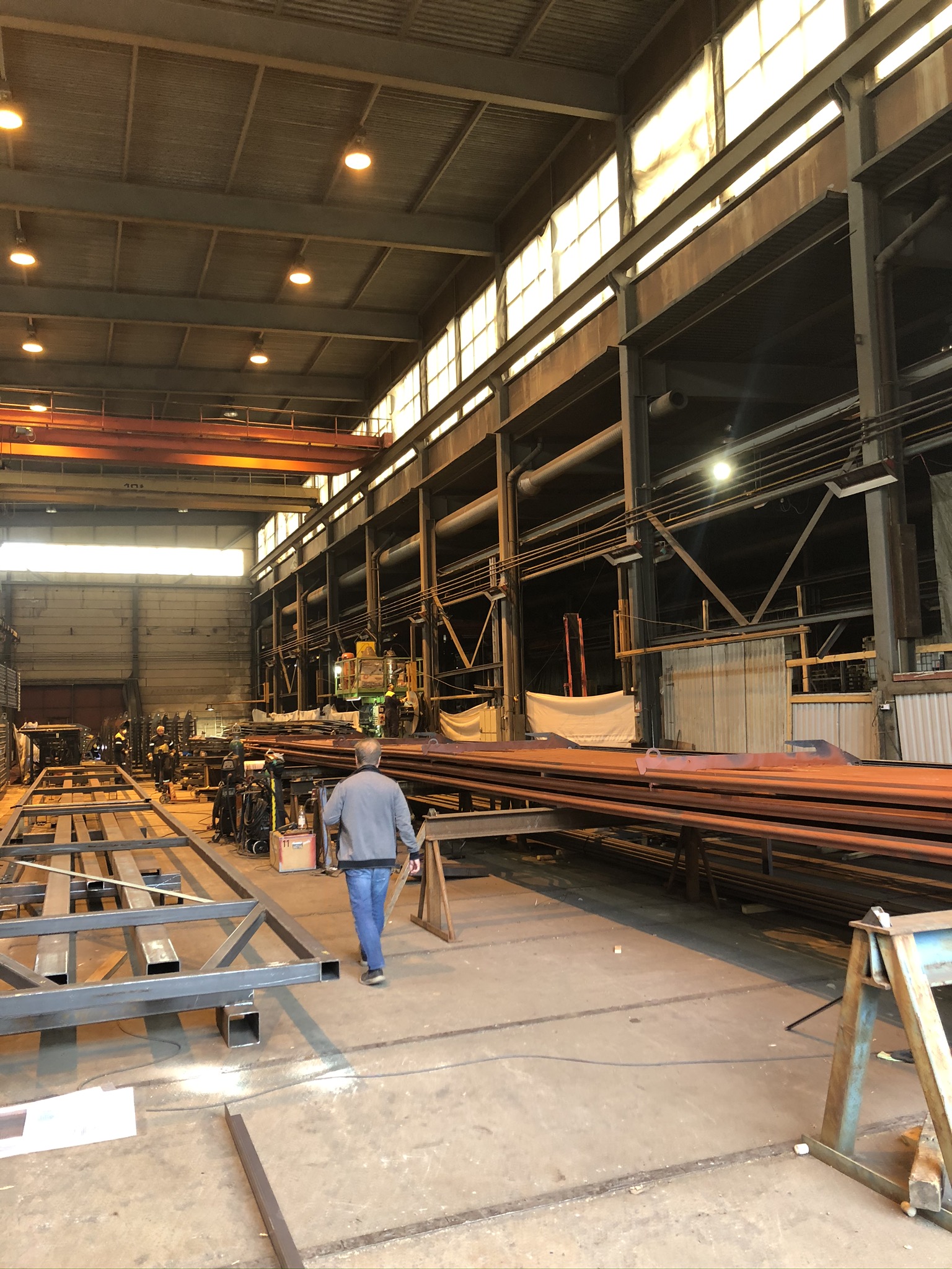 Sinkolinjan perässä oli automaattinen ruiskumaalauskone. Takaosassa maalatut teräkset saivat kuivua. Niputetut teräkset lastattiin etuosassa rekkaan ja ne matkasivat asennustyömaille tai vietiin kärryillä läheiselle teräspalvelukeskukselle.